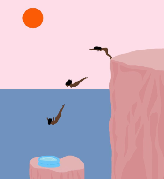 M- When I first started these drawing, I focused heavily on themes of isolation. My pictures often focus on being alone in a vast, strange world. A lot of my inspiration comes from classic 1920s surrealism. I love the way Rene Magritte portrays bizarre scenery an nude women. Guy Billout is my biggest influence, I love the feeling of his work. It’s super clean and spare, but it’s surrealist at the core with beautiful colours - which is exactly what I’m going for.